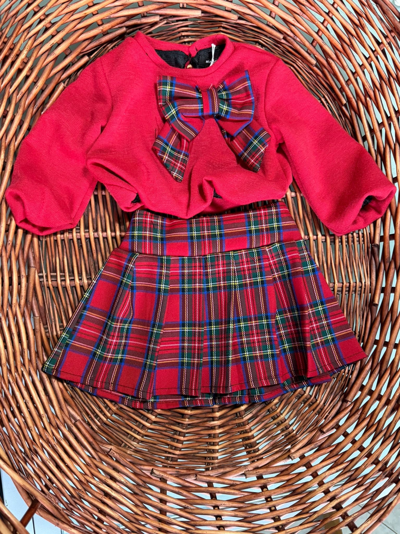 Completo felpa con fiocco e minigonna fantasia scozzese