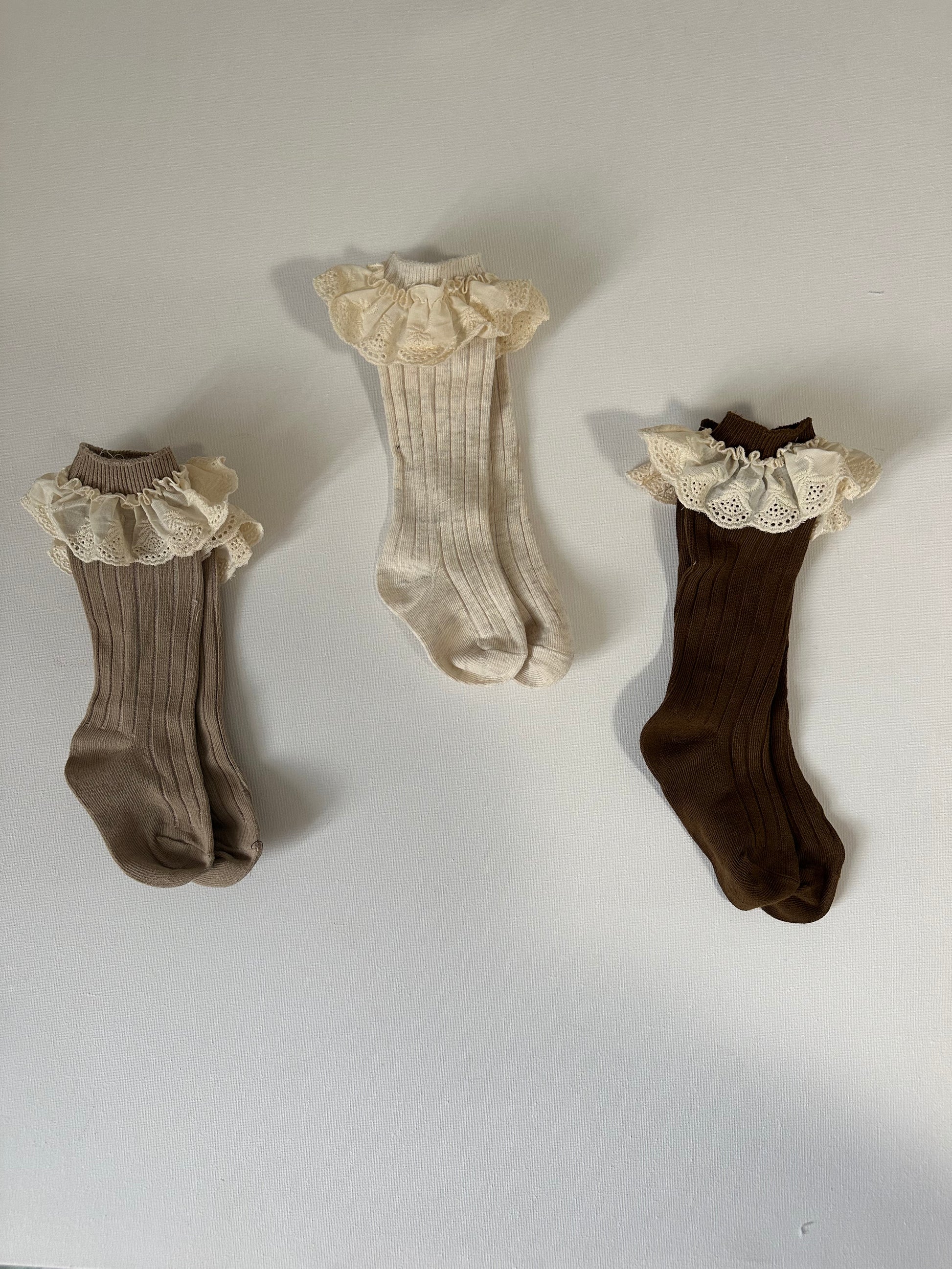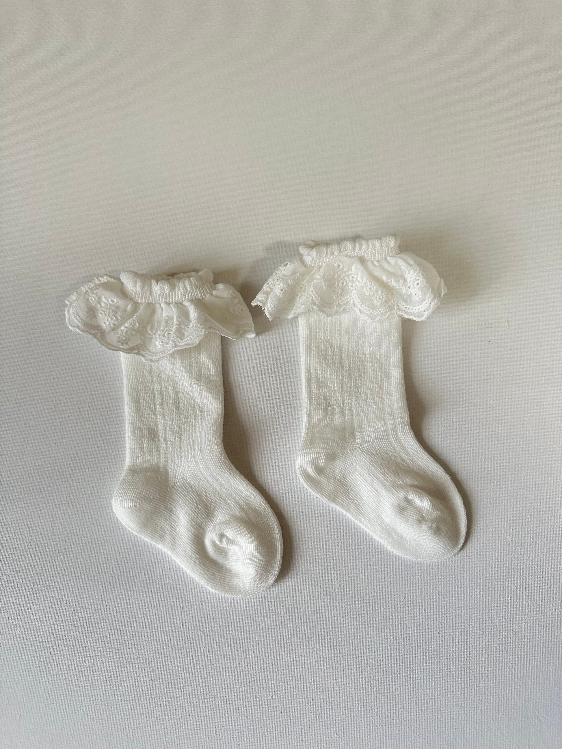 Calzini a costine con voilà in pizzo sangallo